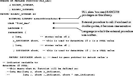 functions to be built into DLLs and invoked by EXTPROC. The following is