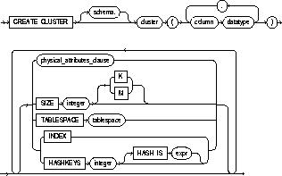 CREATE CLUSTER personnel ( department_number NUMBER ) SIZE 512 HASHKEYS 500 STORAGE (INITIAL 100K NEXT 50K PCTINCREASE 10);