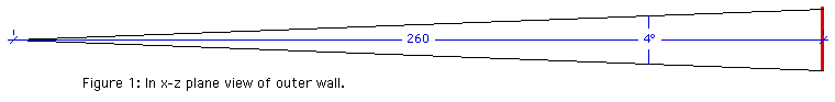 The rough design geometry of the TOF wall with only two wall segments covers only 1.42% of the solid angle. The wall was designed to have a 15% occupancy, which is way the scintillator slats cover a 20cm x 8mm area with respect to the interaction point with a 1mm gap between each scintillator. Therefore, the total length of a wall segment is 1080mm. The inner segment covers angles in theta, the angle with respect to the beam pipe, of 90o to 55o and has a distance of 1.7m at 90o from the interaction point. The outer segment covers angles of 55o to 32.5o with a distance from the interaction point of 2.6m at 55o. At these distances, the angle in phi, the angle with respect to the x-axis, for the inner wall is 7o and for the outer is 4o. Both of the two wall segments cover a pseudo-rapidity range of 0 to 1.25.