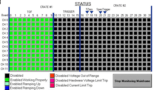 5. The Send to Mainframe button will report “Sending”. When this button returns to its original state, showing “Send to Mainframe”, the data was sent and that board was read out up dating all the monitoring indicators.