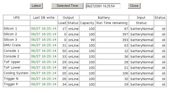At any time, the status of the UPSs can be checked from the portal. The window should look like this, under normal conditions: